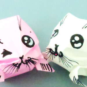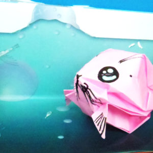 折り紙のキットです。手で折り、自分で目や体をかくことで、オリジナル作品に!バイカルアザラシの特徴がよくわかります。パッチリおめめや、すやすやおめめ。好きな顔をかいてみましょう。